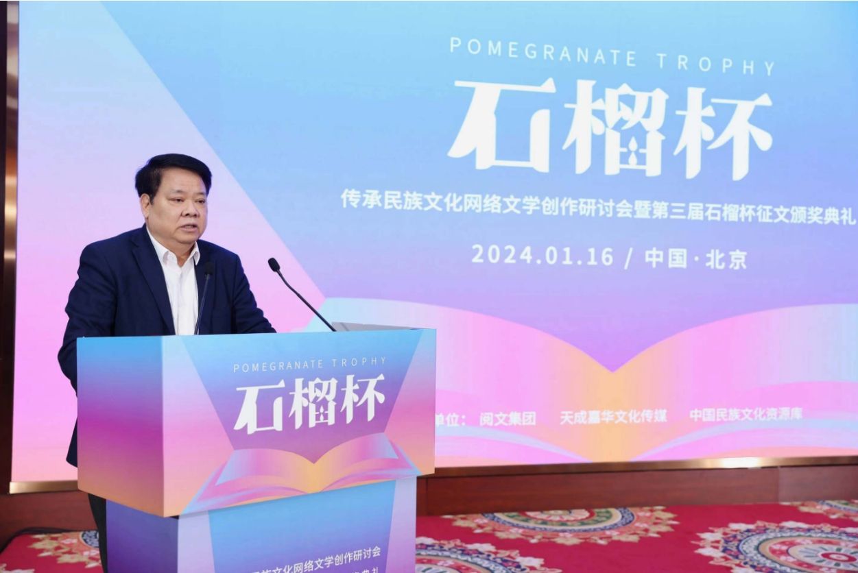1月16日,由閱文集團(tuán)、北京天成嘉華文化傳媒主辦的“傳承民族文化網(wǎng)絡(luò)文學(xué)創(chuàng)作研討會(huì)暨第三屆石榴杯征文頒獎(jiǎng)典禮”在北京民族文化宮舉行?;顒?dòng)貫徹國家民委和中國作協(xié)聯(lián)合發(fā)出的《關(guān)于以鑄牢中華民族共同體意識(shí)為主線推動(dòng)新時(shí)代民族文學(xué)事業(yè)高質(zhì)量發(fā)展的意見》的精神,旨在突出民族團(tuán)結(jié)主題,鼓勵(lì)民族題材創(chuàng)作,挖掘具有市場開發(fā)潛力的網(wǎng)文作品,推動(dòng)“民族 IP”轉(zhuǎn)化。