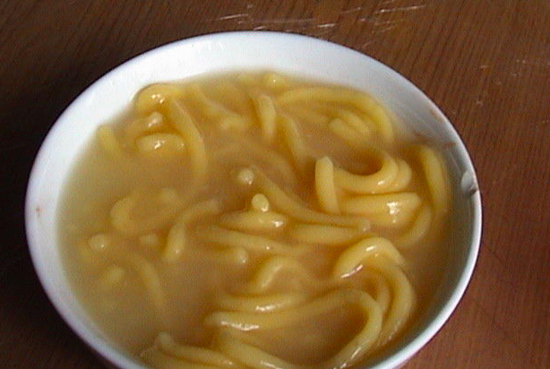 在夏季,滿族同胞喜食“酸湯子”,其制法是:用玉米發(fā)酵面團(tuán)制成面條或面片,直接甩入湯鍋中制成。操作步驟是將玉米浸泡磨成水面,用布濾去渣滓,細(xì)面入缸發(fā)酵至微酸,然后從手指上戴的漏斗形湯套中擠出長條,下沸水鍋中稍煮,再盛入碗內(nèi)。也可將發(fā)酵后的面團(tuán)加糖攪成糊狀,用勺舀從鍋沿自然流入鍋中間,成牛舌狀,也稱牛舌餑餑。食用時略帶酸味,味美可口。