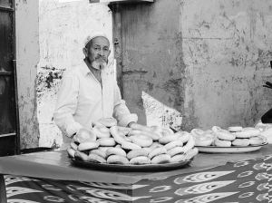 維吾爾老人很會打馕,這又是小城的另一項營生。原先住在農(nóng)村,大家都是用自己的馕坑來打馕,打一次夠一個星期食用。進(jìn)了城,馕坑沒了,主婦們用烤箱烤了幾次,總覺得少了那么一點味道。于是,小城里出現(xiàn)了幾個打馕人,在馕坑里打好馕,每日售賣。