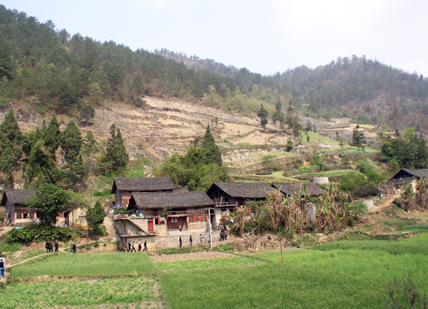 毛南族的村落多依山而立,少占耕地。干欄群落是毛南族村莊的一種布局,但形式不拘一格,根據(jù)地形特點(diǎn)而富有變化。有的從山腰往下建成輻射式群落,即幾座房子前后用“天橋”串聯(lián)起來,組成串聯(lián)式干欄群,這是同一宗族兄弟常采用的一種方式。有的則建立并聯(lián)式群落,即由若干間干欄房子排成兩行,中間留一條通道,兩端置圍墻與院門,圍成長形院落。也有從實(shí)際地形出,把房屋排成梯級(jí)式干欄群或擺成一字長蛇形的。此外,有的在幾座并排的房子中間開通方便門,以利叔伯兄弟及鄰里串門聯(lián)系,相互關(guān)照,形成一種向心力。村中巷道皆用石板鋪就。村邊興種竹木擋風(fēng),綠化美化環(huán)境。村頭奇特的大樹被視為村、峒守護(hù)神樹,神圣不可冒犯,一旦遇有瘟疫等異常事件,病家抑或全村皆到大樹下祭神禳解。各村屯的村背面都有大片護(hù)村林,既防石頭滾落,又美化村景,此林不允許隨意砍伐。同時(shí),自然屯大都設(shè)立集體活動(dòng)場所,在水井、溪邊、道旁或大樹下擺放石凳,供人們節(jié)日及閑暇時(shí)間聚會(huì)、娛樂。