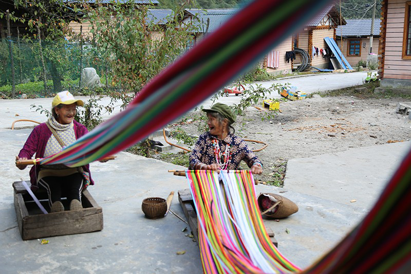 習(xí)總書記接見后,李文仕(左)回村繼續(xù)織起獨(dú)龍?zhí)?。如今?dú)龍?zhí)阂殉蔀楠?dú)龍女重要的創(chuàng)收來源