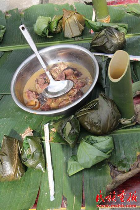 包在野生植物葉片里的特色飯菜
