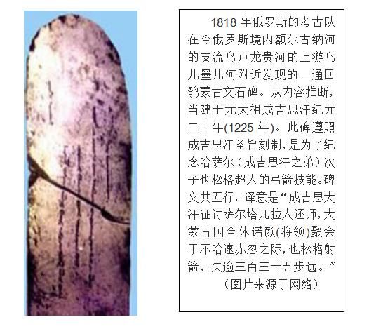 在成吉思汗叱咤風(fēng)云的時代,中國北方與宋王朝并立先后存在過西夏、遼、金、蒙古等少數(shù)民族政權(quán)。這些政權(quán)的主體民族,西夏國的黨項、遼國的契丹、金國的女真、蒙古國的蒙古,都有本民族語言,最初都沒有本民族文字。建立政權(quán)后,為了適應(yīng)政治和文化發(fā)展的需要,他們有的創(chuàng)立了本民族文字,如西夏文、契丹字、女真字等等?;佞X西遷之前,與蒙古共同生活在蒙古高原,他們都是游牧民族,經(jīng)濟文化與許多相似性,語言上同屬阿爾泰語系,分屬蒙古語族和突厥語族,因此蒙古語與維吾爾語的一些日常用語和詞匯是相同或相近的。如黑(哈喇)、黃(霞喇)、金(阿拉泰)在蒙古語與維吾爾語中發(fā)言是一樣的。成吉思汗命塔塔統(tǒng)阿用回鶻字母創(chuàng)建蒙古文字,就是在這樣的時代背景和回鶻、蒙古的文化聯(lián)系上產(chǎn)生的。現(xiàn)存用回鶻式蒙古文寫成的文獻中,最早的是1225年的《也松格碑》(成吉思汗石碑)。