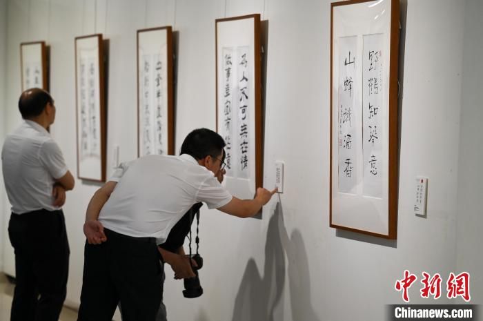 圖為觀眾參觀書法展?!『闻罾?攝