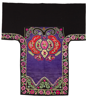 北京服裝學(xué)院民族服飾博物館藏貴州雷山地區(qū)苗族花蝶紋貼補刺繡背扇片。