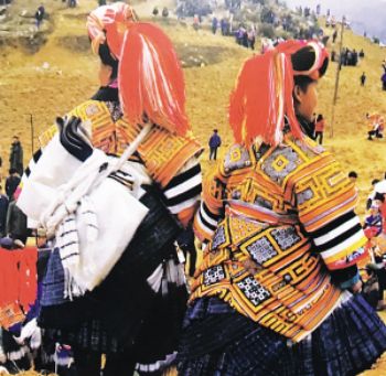 要論“疊穿”的數(shù)量之最,則當(dāng)屬貴州大方縣顯母村的苗族女性了。與苗族慣用銀飾的固有印象不同,這里的苗族女性鮮以銀為飾,她們用數(shù)量極為可觀(guān)的服飾“疊穿”來(lái)彰顯富裕。節(jié)日里,顯母村的苗族女性換上盛裝——數(shù)條百褶裙系在腰間,塑造出豐腴的臀部造型,內(nèi)層裙子素凈無(wú)花,外層裙子則布滿(mǎn)條帶狀蠟染裝飾。在這個(gè)難得的大型社交場(chǎng)合,未婚女孩通過(guò)“疊穿”后的獨(dú)特造型來(lái)展示自己的魅力,衣物的數(shù)量和精致程度成為了吸引異性、獲得肯定的重要標(biāo)準(zhǔn)和獲得美好婚姻的重要條件。到了婚禮時(shí),女性所著裙子的數(shù)量更是可達(dá)35條?;楹?,她們要在裙邊加上一圈深色邊飾以作標(biāo)識(shí)。