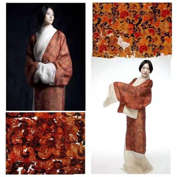 蔣玉秋介紹,服飾復(fù)原有很多級別,最基礎(chǔ)的是形象復(fù)原,規(guī)格更高的是技術(shù)復(fù)原,即從織繡印染等技術(shù)角度出發(fā)的復(fù)原。