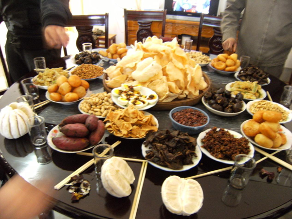 畬族人的副食多取之于山,蘑菇、竹筍、山藥、山野菜等大山中常見(jiàn)的野生植物,都被畬族人食用,而農(nóng)閑時(shí)節(jié)畬族男子會(huì)上山打獵,以改善伙食。蔬菜主要有芥菜、白菜、卷心菜、蘿卜、水芹、茄子等,瓜豆類(lèi)有南瓜、葫瓜、苦瓜、冬瓜、豇豆、豆角等。在水田里勞作時(shí),還可以撿田螺、泥鰍、鱔魚(yú)等加餐。