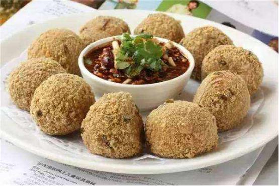 沿山豆腐丸子:豆腐丸子是沿山特色小吃,將豆腐抓成豆腐碎,把蔥或韭菜切成碎末放入豆腐碎中,同時加入鹽和五香粉,反復(fù)用手揉豆腐碎,把揉好的豆腐團(tuán)成丸子的形狀,放入油鍋中炸至變色撈出,即可食用,食用時外酥里嫩,深受游客的喜愛。