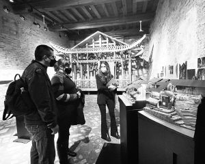 2021年5月,第17屆威尼斯國際建筑雙年展官方平行展“兩河口,一個(gè)土家會(huì)聚之地的再生”在威尼斯禪宮與宣恩縣兩河口村同時(shí)連線開幕。圖為威尼斯禪宮展覽現(xiàn)場(chǎng)。 閔天怡供圖