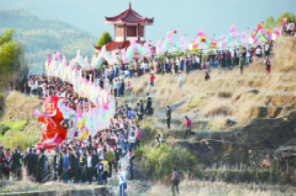 正月十五元宵夜,福建龍巖姑田鄉(xiāng)村,大龍翔游,看客云集。二百多節(jié)、千米長的大龍,蜿蜒于鄉(xiāng)間村野,穿行于大街小巷,騰挪起伏,活靈活現(xiàn);一路上男女老少趨之若鶩,前后左右相隨,游龍隊伍浩浩蕩蕩達(dá)數(shù)里之長,熱鬧非常;所到之處,家家門前燃松明、點香燭、擺果茶、放爆竹,迎接“龍游大地,喜到人間”。