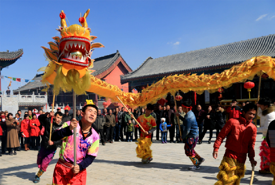 屆時(shí)在廟里還要敬龍牌及各路神仙,并且唱大戲、逛九曲、壘旺火,家家戶戶請親待客、邀朋會(huì)友,共享“二月二”盛會(huì)的歡樂,一同祈求“龍王爺”保佑五谷豐登、人丁興旺,流露出人們對龍的無限崇敬和虔誠的信仰。