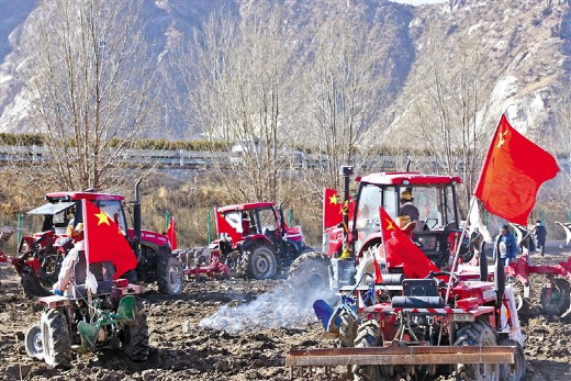 “現(xiàn)在國家大力支持農(nóng)業(yè)發(fā)展,不斷推進(jìn)農(nóng)業(yè)機(jī)械化,我們不僅不用自己耕地,而且效率和產(chǎn)量都提高了很多,我們家富余的勞動力外出就業(yè),一家人的生活也越過越好啦?!眳f(xié)榮村村民索朗曲培說。