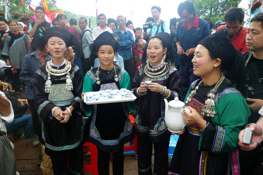 人們傳說只有醉倒了"霞神",它才能永遠(yuǎn)留在這方,才能使這里風(fēng)調(diào)雨順。當(dāng)水書先生念了最后的咒詞,祭典才在鼓樂聲和歡呼聲中結(jié)束。最后,各族系將祭肉一并聚攏,聚餐慶祝。天黑之后,人們秘密地將"霞神"收藏起來,至此,"敬霞"活動(dòng)全部結(jié)束。