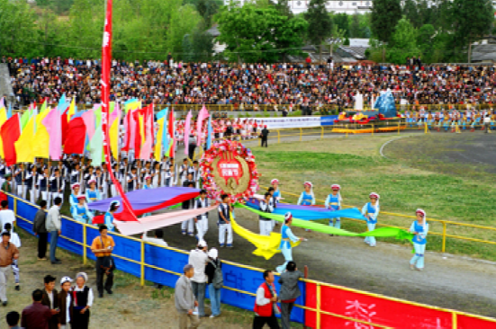 三月街又名“觀音市”,是云南白族盛大的節(jié)日和街期。每年夏歷三月十五至二十日在大理城西的點(diǎn)蒼山腳下舉行。最初它帶有宗教活動色彩,后來逐漸變?yōu)橐粋€盛大的物資交流會。明清時期,四川、西藏、江南各省都有商人到此貿(mào)易。它不僅是個交換場所,還是表演各種舞蹈和賽馬、競技的樂園。中華人民共和國成立后,三月街已發(fā)展成滇西各族人民一年一度繁榮的物資交流和民族體育文藝大會,對加強(qiáng)民族團(tuán)結(jié)、促進(jìn)民族間的經(jīng)濟(jì)文化交流,起了積極的作用。