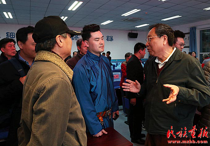 馬頭琴藝術(shù)團(tuán)藝術(shù)指導(dǎo)馬卓群(前排中)與觀眾互動(dòng)