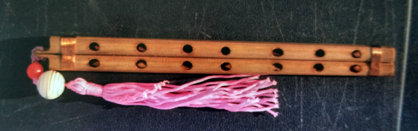 羌笛是一種吹管樂器,歷史悠久。羌笛至今已有兩千余年歷史。據(jù)史載,西漢前,羌笛面上有四孔,公元一世紀由京房加一高音按孔,為五孔。東漢馬融在《長笛賦》就曾有“近世雙笛從羌起”的記述,唐代亦有“羌笛何須怨楊柳”的名句。發(fā)展到近代羌笛已成六孔。2006年5月“羌笛演奏及制作技藝”被列入《第一批國家級非物質(zhì)文化遺產(chǎn)目錄》。羌笛在羌語中稱為“其篥”“士布里”或是“幫”,是一種古老的民間豎吹樂器。它由兩根長約15—20厘米,直徑1厘米左右,筒孔大小一致的竹管并在一起,用絲線纏繞,管頭插著竹簧。管身竹制或骨制,由發(fā)音簧哨和方筒形管體組成。兩管長短、孔距和音高相同。管上設五個或六個按孔。演奏時,雙手持笛,將簧哨含入口內(nèi),用特殊的“鼓腮換氣法”吹奏,指法與笛相同。制作羌笛一般選用箭竹,并根據(jù)筒管的長短、厚薄及筒管大小測定音準,孔距必須精確相等,否則音準不一。