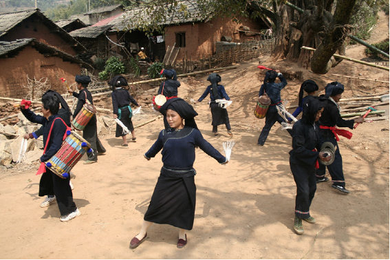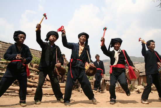 在雙江,有一個偏遠的小山村,因這里“出產(chǎn)”蜂桶鼓和蜂桶鼓舞而遠近聞名,它就是邦丙鄉(xiāng)南直村。蜂桶鼓和蜂桶鼓舞是雙江布朗人的獨門絕活,完全屬于雙江布朗人。蜂桶鼓源于它的形狀像民間養(yǎng)蜂的蜂桶而得名,而蜂桶鼓的由來卻充滿了神秘的傳奇色彩。相傳: