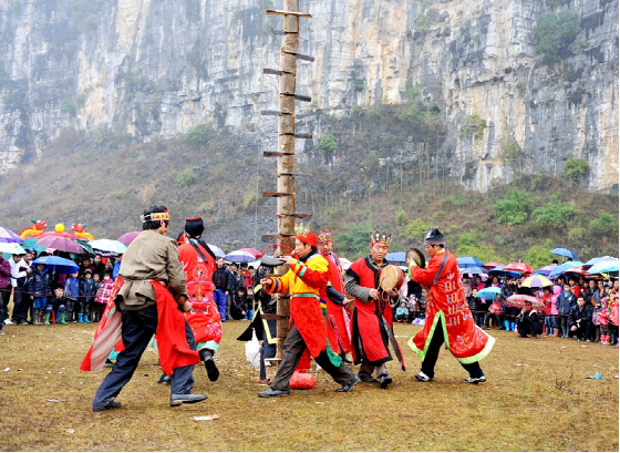 師公,壯語叫公篩或尸公,是盛行于廣西壯族地區(qū)的民間宗教職業(yè)者之一。對(duì)于師公的歸屬,學(xué)術(shù)界有不同的說法.一種說法認(rèn)為,師公淵源于古代的巫術(shù), 屬巫教范疇,或稱梅山教,后兌變成儺教,以儺教這種形式出現(xiàn),主要分布在湖南、江西和嶺南一帶的越族人當(dāng)中。分布在廣西的儺教就演變成尸公教(男神職人員叫尸公,女叫巫婆),現(xiàn)在稱之為師公教。在發(fā)展過程中深受道教影響,逐步形成了一種以壯族原始宗教為主,兼蓄道教部分內(nèi)容的古老民族宗教。