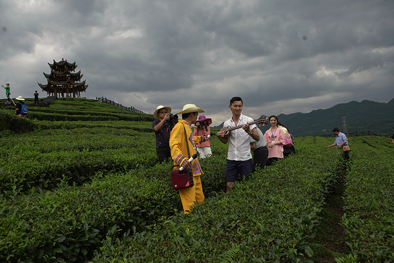 “山霧朦朦不見(jiàn)山,河水彎彎不見(jiàn)河;隔天不見(jiàn)采茶妹,好比家中斷油鹽?!敝醒朊褡甯栉鑸F(tuán)“彝人制造”樂(lè)隊(duì)的歌手自編的云南小調(diào),由衷地贊美了湖北恩施州宣恩茶鄉(xiāng)的美麗風(fēng)光。地域和語(yǔ)言不再是阻礙,音樂(lè)的互通與共情讓各民族的交流與溝通更加順暢。