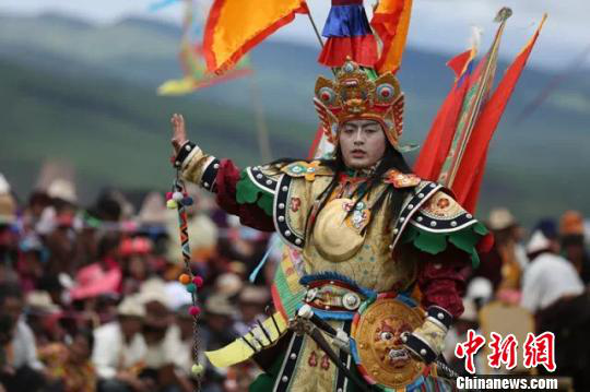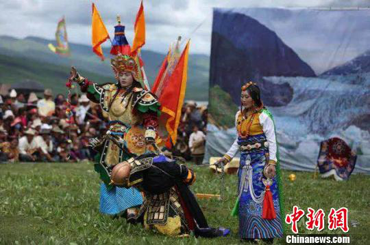 圖為掛牌儀式現(xiàn)場(chǎng)上演藏戲《格薩爾王傳》 鐘欣 攝