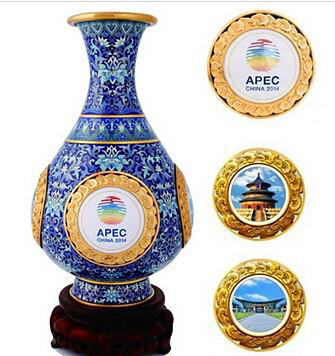 2014年APEC會議中,作為國禮饋贈給各經(jīng)濟體領(lǐng)導(dǎo)人的三件禮品中就有一件采用景泰藍工藝,以藏于北京故宮博物院的霽紅釉玉壺春瓶為原型,由中國七位國家級、北京市工藝美術(shù)大師聯(lián)手創(chuàng)作的《四海升平》景泰藍賞瓶。