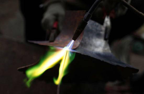 景泰藍的制作的第一步,就是制胎。這是將不同規(guī)格型號的紫銅,根據(jù)設(shè)計圖的要求裁剪出不同形狀,或是扇形,或為圓形,再用鐵錘把它敲打成瓶、盤、碗、罐等各種形狀的銅胎。粗看那些已經(jīng)制作成型的銅胎,顏色樸素,其貌不揚,似以一種平和淡然的心態(tài),等待著即將到來的明麗璀璨。