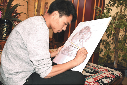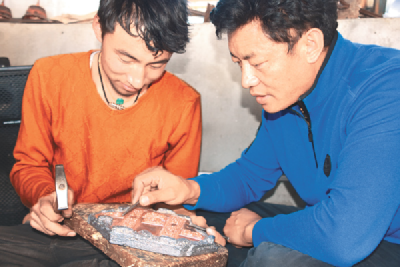 技藝上的登峰造極,次嘎把這一秘笈歸結(jié)成幾個(gè)平常的字眼:“興趣和堅(jiān)持”。從小受家族文化的熏陶,兩個(gè)兒子對(duì)傳統(tǒng)文化有著濃厚的興趣。薪火相傳也成了次嘎肩上的責(zé)任。20出頭的大兒子扎西拉達(dá)穿著白T恤,皮膚白皙、手指纖長(zhǎng)、陽(yáng)光帥氣,立志要子承父業(yè)?!案赣H告訴我即便是要做一名手工藝人,也不能放棄對(duì)文化知識(shí)的學(xué)習(xí),從小便把我送到內(nèi)地學(xué)習(xí)?,F(xiàn)在,我長(zhǎng)大了,該回來(lái)了?!?扎西拉達(dá)的話(huà)語(yǔ)堅(jiān)定。