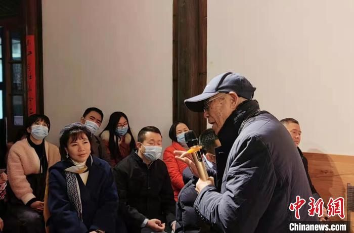 圖為陳茂錦正向現(xiàn)場觀眾介紹閩箏?!∪~秋云 攝