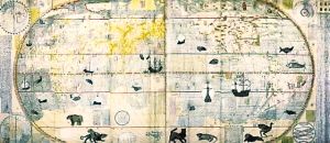 李之藻年輕時(shí)就對(duì)實(shí)學(xué)頗感興趣,曾自行繪制過明朝兩京十三省的地圖。見到利瑪竇用西法繪制的世界地圖后,李之藻敏感地意識(shí)到,這個(gè)地圖的繪制方法與中國(guó)傳統(tǒng)的“計(jì)里畫方”方法不同,是“取天文以準(zhǔn)地度”,用經(jīng)緯度確定地理方位。對(duì)利瑪竇的學(xué)問一見而傾心的李之藻,每天都要到利瑪竇的公寓學(xué)習(xí)地理、天文知識(shí),每次都要花上四五個(gè)小時(shí)。1602年,李之藻與利瑪竇結(jié)合中西繪圖技術(shù),合作繪制了一版世界地圖《坤輿萬(wàn)國(guó)全圖》,這幅地圖改變了當(dāng)時(shí)通行的將歐洲居于地圖中央的西方繪圖格局,把子午線向西移動(dòng)170度,從而使東亞的中國(guó)居于地圖的中央,并且全圖標(biāo)上了詳細(xì)的漢字標(biāo)識(shí),這是中國(guó)最早的世界地圖。