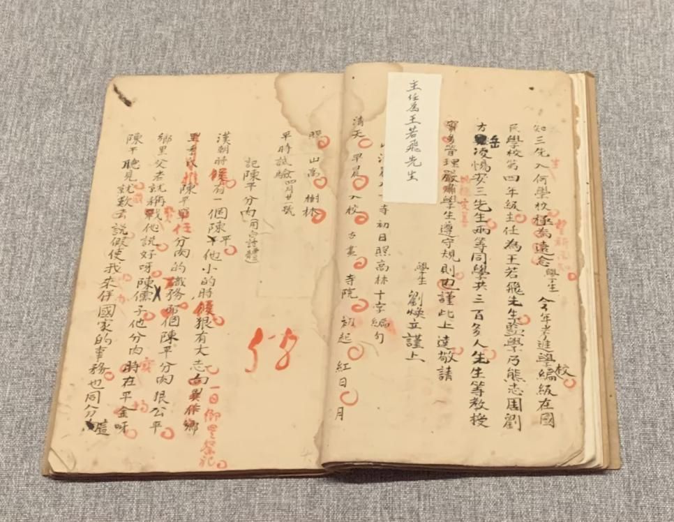 王若飛親筆批改的小學課本(許覬佳攝于貴州省博物館)