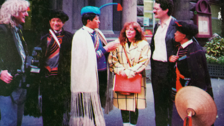 ▲上世紀(jì)90年代,沙馬拉毅(左三)參加國(guó)際會(huì)議。 沙馬拉毅供圖