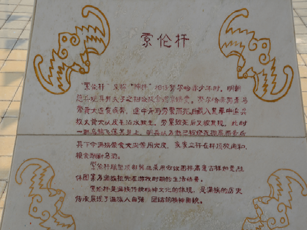 滿族認為,“四世同堂”或“三世同堂”是件大喜事,同堂的輩行越多越光榮。因此,隨著人口的增加,除正房外,又建有東西廂房和南向而中間留有門洞的門房,這種建筑及布局就是我們今天所稱道“四合院”。其特點是:院內(nèi)靠門洞的地方建一矮墻,稱為“影壁”。影壁后豎一根八尺高左右、碗口粗的神桿,桿頂端掛有一錫制或木制的斗子,稱為“索倫桿”。兩廂南端是牲畜欄圈。正房后中間空地是菜圃,四周栽植果樹或花卉。房屋四周圍以橫墻,自成院落,大戶用磚石,小戶用木柵。這樣院連院,戶連戶,很自然地形成了堡子、營子和屯子。