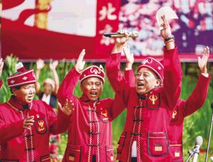 云南省滄源縣班洪鄉(xiāng)班洪村的佤族群眾身穿節(jié)日盛裝,敲響佤族木鼓。新華社記者 江文耀攝