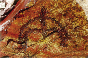 彩繪巖畫作為南系巖畫的主要代表類型,在寧夏境內(nèi)并不多見,僅在石嘴山白芨溝的一處坐北朝南的天然洞窟中發(fā)現(xiàn),巖洞敞開,可容納數(shù)百人。被發(fā)現(xiàn)的彩繪巖畫分布在高8米、長10米的崖壁上,坐西向東,以赭石顏料涂繪,有24組42幅精美的巖畫,內(nèi)容包括狩獵、騎者、牧歸,以及牛、羊、馬、狗等動(dòng)物。這些罕見的彩繪巖畫時(shí)至今日依然是“養(yǎng)在深閨人未識(shí)”,更讓人擔(dān)心的是隨著環(huán)境污染造成的自然破壞已經(jīng)讓這些彩繪巖畫顏色發(fā)白,亟待引起重視,加以保護(hù)。