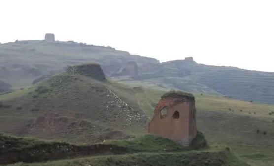 小元岇長(zhǎng)城比北堡川高200∽300米,山川之間是為寬緩慢坡,今可驅(qū)車直達(dá)長(zhǎng)城頂上。這對(duì)于當(dāng)年善于馳騁野戰(zhàn)的胡騎形不成特別的阻礙,因此這里的長(zhǎng)城防御布置的相當(dāng)密集。站在海拔1650米高的馬頭山墩臺(tái)遠(yuǎn)眺,長(zhǎng)城墻體縱橫交錯(cuò)曲折環(huán)互,蜿蜒于山脊,迷離若龍蛇橫臥。烽堠墩臺(tái)林立,密密如點(diǎn)棋局,灑鋪于群山之間。馬頭山墩臺(tái)坐落于最高峰,腳下群山連綿,長(zhǎng)城墩臺(tái)盡收眼底。長(zhǎng)城內(nèi)側(cè)有一民堡,因靠近小元峁村稱小元岇堡,此堡應(yīng)為文獻(xiàn)所載好漢山堡,由兵使盧友竹筑于崇禎五年,是為加強(qiáng)視遠(yuǎn)隘口而筑的防御軍堡。