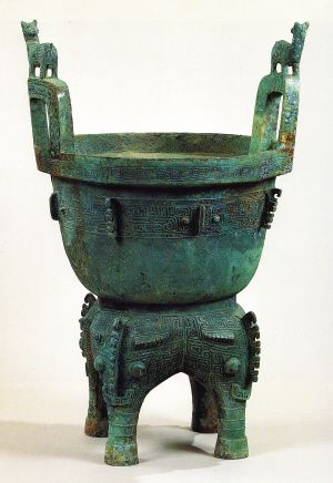 殷墟出土的可移動文物包括大量青銅器、玉器、骨器、陶器、牙器、蚌器、竹木器、漆器、皮革制品、紡織品。青銅器中,司母戊方鼎、司母辛鼎、婦好三聯(lián)甗、鸮尊,以及雙馬驅(qū)動的馬車配件尤其引人關(guān)注。玉器包括各種禮器、飾品、工具以及玩賞品,種類繁多,色澤豐富。陶器除普通粘土陶外,還出土白陶、硬陶及釉陶(原始瓷)。