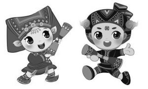 湖南省第十屆少數(shù)民族傳統(tǒng)體育運(yùn)動會吉祥物瑤妹和瑤哥。