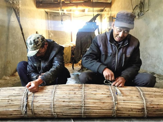 接著,父子幾人配合著,開始蹬簾子步驟?!皳{簾子的步驟最關(guān)鍵?!倍藕C髡f,蹬簾子的時候,蹬的時間長了不行,短了也不行,要掌握好時間,才能達到最好的效果?!澳亩夹枰毣圆痪毦蜁霈F(xiàn)氈散了、爛了,做不成功就廢了。”說著,杜占財和杜占福在杜海明的帶領(lǐng)下,三人用雙腳,來來回回仔細地進行著搟簾子。