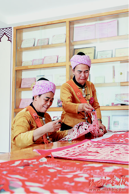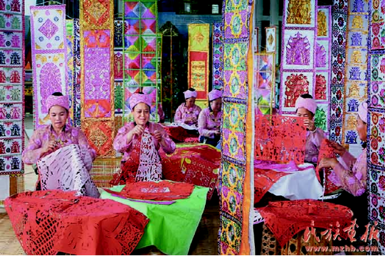 工藝美術(shù)專家在邵梅罕傣族剪紙藝術(shù)館考察。