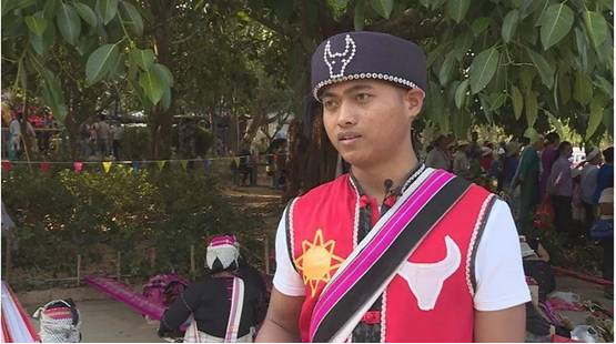翁嘎科魏明介紹:“佤族男服飾以黑或者與紅、黑白、黑紅為搭配,女服飾裙子是純手工藝以黑白、黑紅為主基調(diào), 頭飾是用銀白色的頭飾進行裝飾,裹著一層類似于項鏈一樣的飾品,最原始的頭飾還是用黑布裹起來的,演變到現(xiàn)在的話還需要做一些裝飾?!?/p>