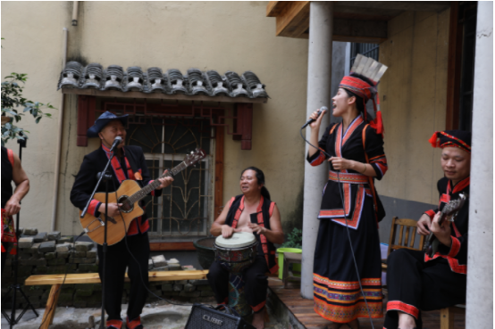 瑤族民間樂團——七彩鄉(xiāng)音全天候為游客演唱用瑤族傳統音樂元素創(chuàng)作的歌曲