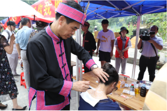 本次活動以2020年“文化和自然遺產日”的“非遺傳承,健康生活”為主題,重點圍繞傳統醫(yī)藥項目保護,普及“非遺”知識和健康生活理念,營造全社會共同參與、關注和保護傳承優(yōu)秀傳統文化濃厚氛圍而開展。邀請十位瑤醫(yī)藥傳承人帶領40多位瑤醫(yī)弟子各顯神通,在現場開展非遺項目義診活動,為游客免費問疹,展示泡藥療法、針灸療法、燈草療法、坐浴療法、拉伽通灸療法等10種技法?,幷锩恳粦羧思夷贸瞿檬纸^活在自家進行現場展示,黃泥鼓制作、樹葉豆腐制作、瑤族織繡技藝、釀酒技藝、舂糍粑、原創(chuàng)歌曲展示等,豐富多彩的各種技藝,讓游客流連忘返。