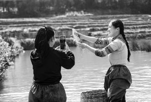 云南紅河哈尼稻作梯田系統(tǒng)被認定為全球重要農(nóng)業(yè)文化遺產(chǎn)。圖為當(dāng)?shù)卮迕裨谔萏锱灾辈プヴ~。 陳欣波攝