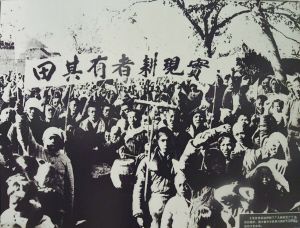 冀中農(nóng)民舉行擁護(hù)土地改革運(yùn)動大會(翻拍于西柏坡紀(jì)念館)。 新華社記者 朱旭東攝