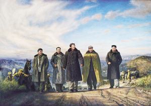 油畫《新中國從這里走來》。 常青繪 中國共產(chǎn)黨歷史展覽館藏
