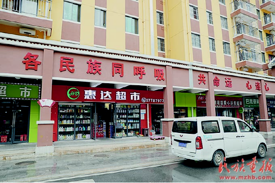民族團(tuán)結(jié)標(biāo)語(yǔ)在和諧社區(qū)隨處可見(jiàn)。