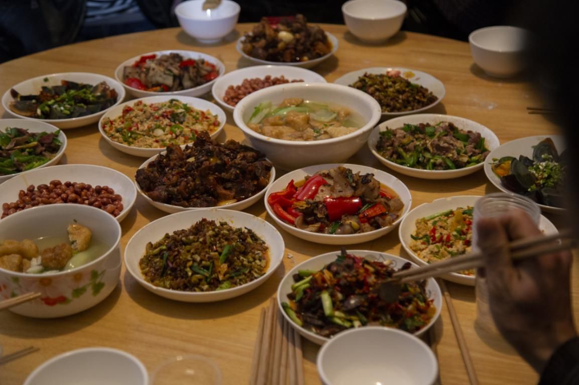 敬灶始,先在堂后做法事后,再端起文書到灶房灶頭做法事,文書燒在灶中。領(lǐng)牲法事有的戴面具,有的不戴面具。領(lǐng)牲都極具戲劇形態(tài),其中有角色對(duì)白,邊唱邊舞,壇場(chǎng)打諢,語(yǔ)言幽默,觀眾喜愛(ài)。一般都把洗凈的豬抬進(jìn)中堂,用司刀把豬尾巴割掉,掏出豬腰,請(qǐng)出殺豬匠來(lái)說(shuō)一些奉承言語(yǔ),燒紙,敬酒。領(lǐng)牲的程序,首先去豬頭,后把三絲肉、合同肉;扎案肉;豬尾巴;豬腰子,頭、蹄腳用來(lái)敬菩薩,五心肝肚也要拿來(lái)敬菩薩。