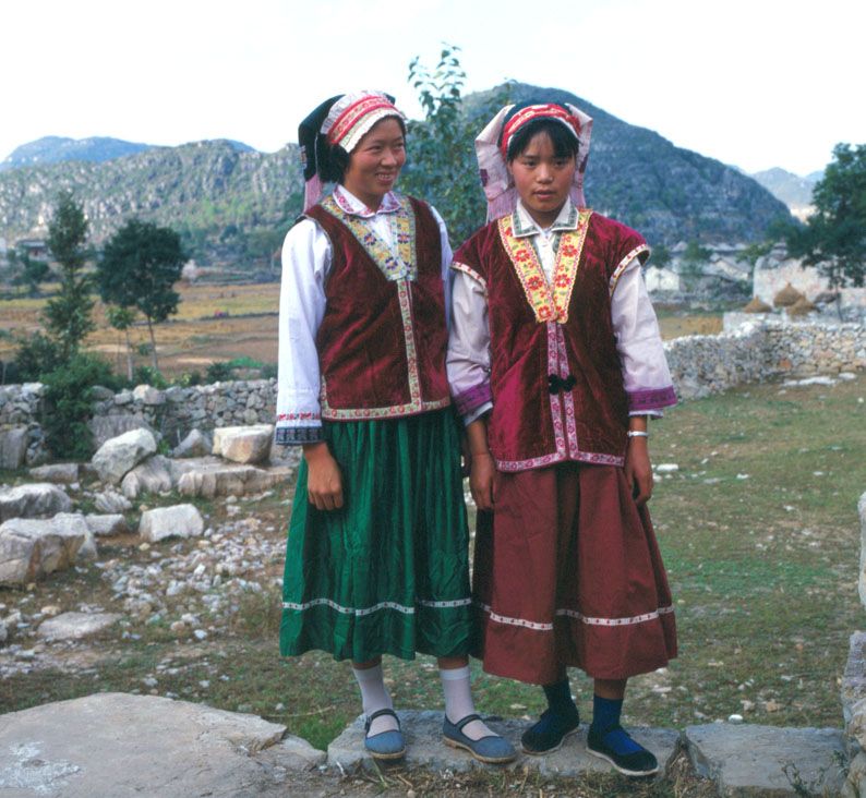 貴州貴陽(yáng)苗族女子服飾花帶百褶裙